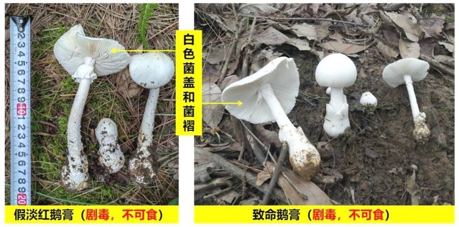 据贵州省卫健委官微“健康贵州”介绍:鹅膏菌类似“雨伞状”,带有菌盖、菌环和菌托三大典型要素,贵州常见的品种有致命鹅膏、假淡红鹅膏、黄盖鹅膏等。致命鹅膏、假淡红鹅膏两者均含有鹅膏肽类毒素,误食后大概在2-3天会出现急性中毒性肝炎,严重者出现急性肝衰竭。