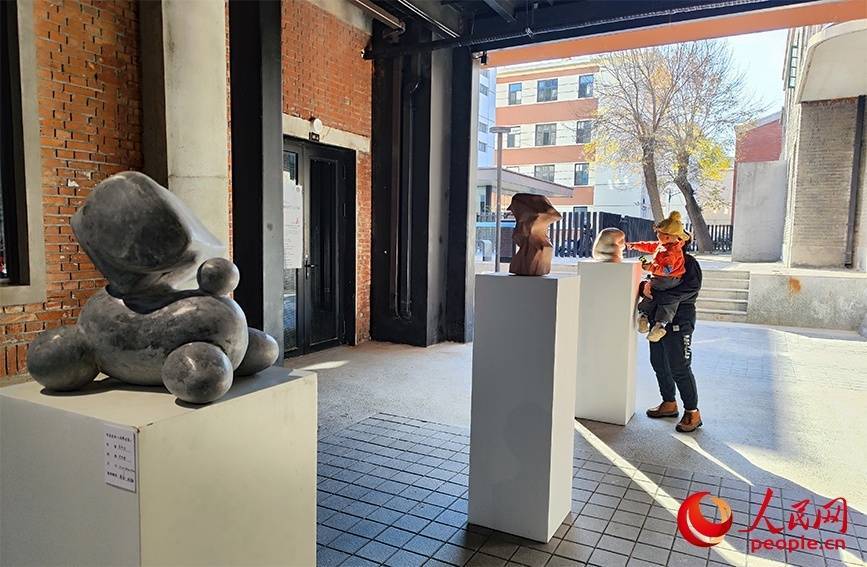 市民在天美艺术街区欣赏雕塑作品展。人民网记者 郭维瑾摄
