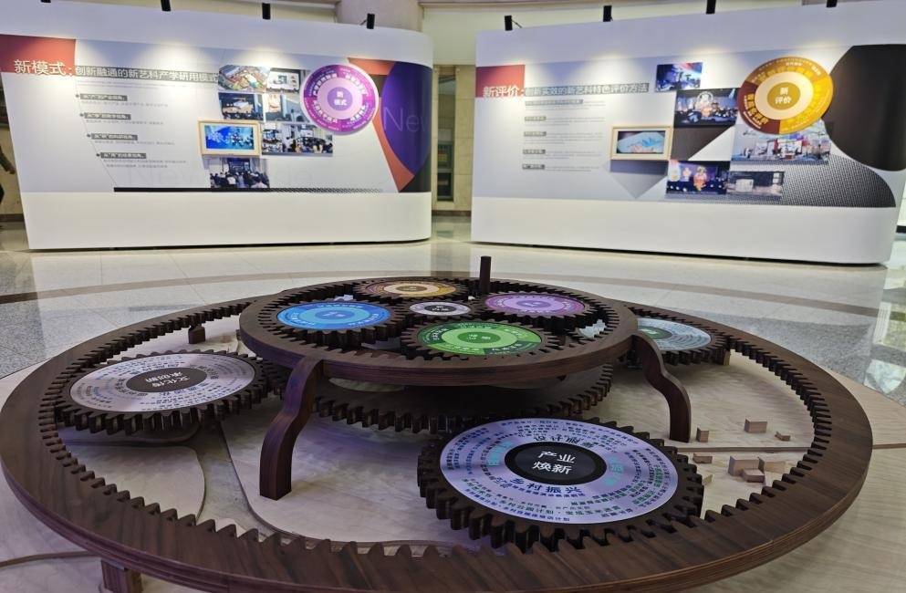 在天津美术学院主校区,一套“五星齿轮”模型展示了“新艺科”改革的系统架构。