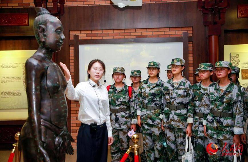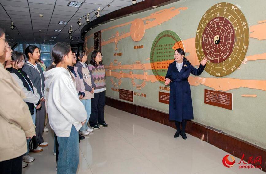 志愿讲解员给新生讲述中医药发源地的辉煌。人民网 程明辉摄