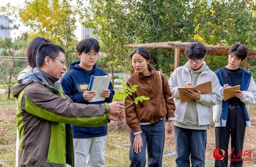 “大家仔细观察怀山药的叶片脉络,再对比丹参的根系形态,记录下秋分后、霜降前它们的成熟特征。”金秋十月,河南中医药大学药用植物园内桂香正浓,《药用植物学》教师兰金旭正带领着2025级新生现场教学。