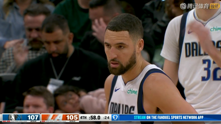 独行侠喊了暂停,暂停回来,开始全力反扑,克莱手感回暖,接连命中三分,终于在这一节结束前将分差抹平了。